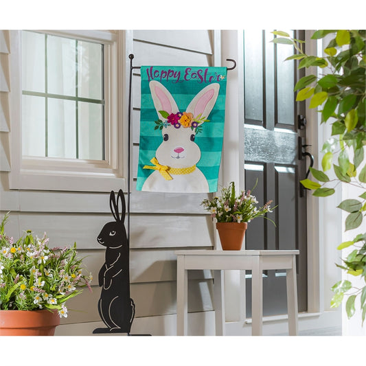 Happy Easter Floral Hat Bunny Applique Windsock; Polyester 9"ODx36"L