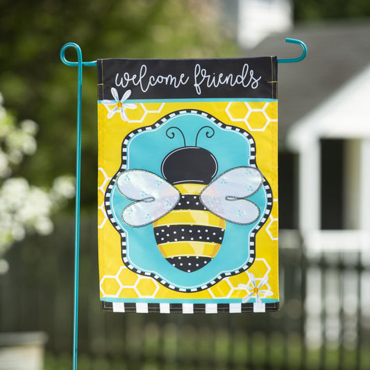 Buzzing Bee Printed/Applique House Flag; Polyester 28"x44"