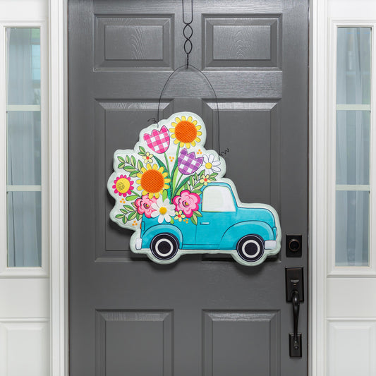 Spring Flower Truck Estate Door Hanger; Polyester 25"Lx22"W, overall 30"