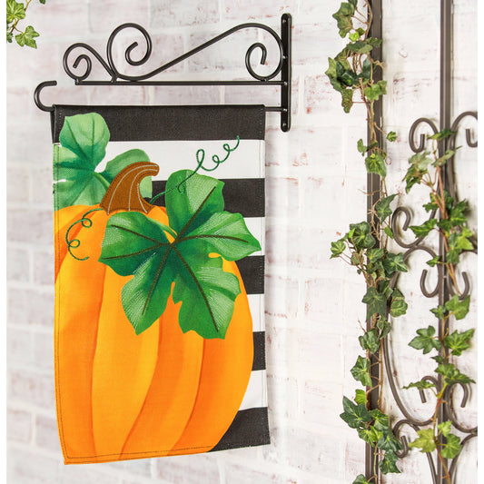 Pumpkin Stripe Printed Burlap Garden Flag; Polyester 12.5"x18"