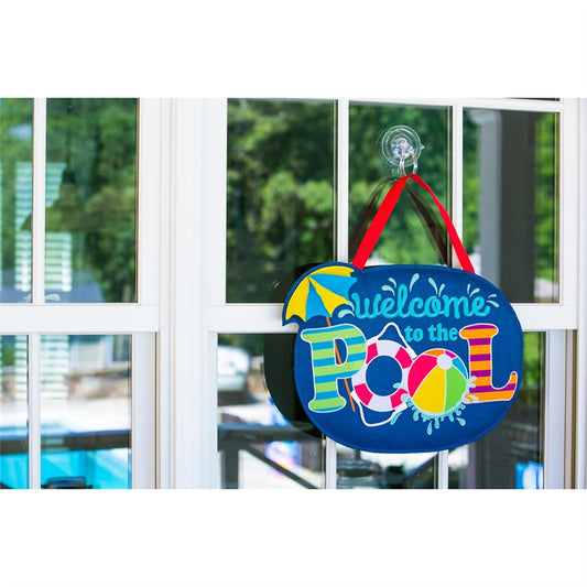 Welcome to the Pool Door Hanger; Burlap 16"Tx22"W