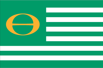 The Ecology Flag was adopted by American Environmentalists in the 1970's and is still used today. Consisting of a green and white design, the green is meant to represent the land, white is used for pure air, and the yellow symbol combines the "e" of environment and the "o" of organism and is meant to invoke the idea of the earth as a living thing to be protected and nurtured.