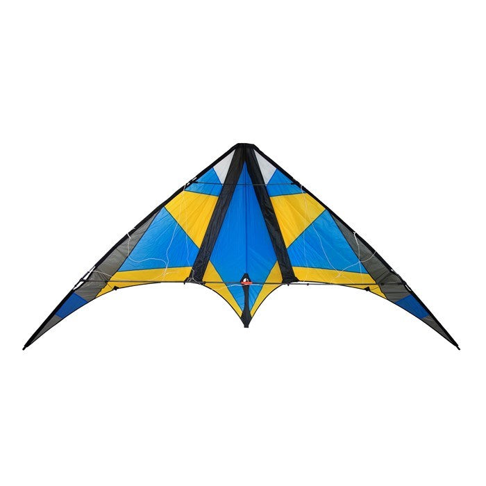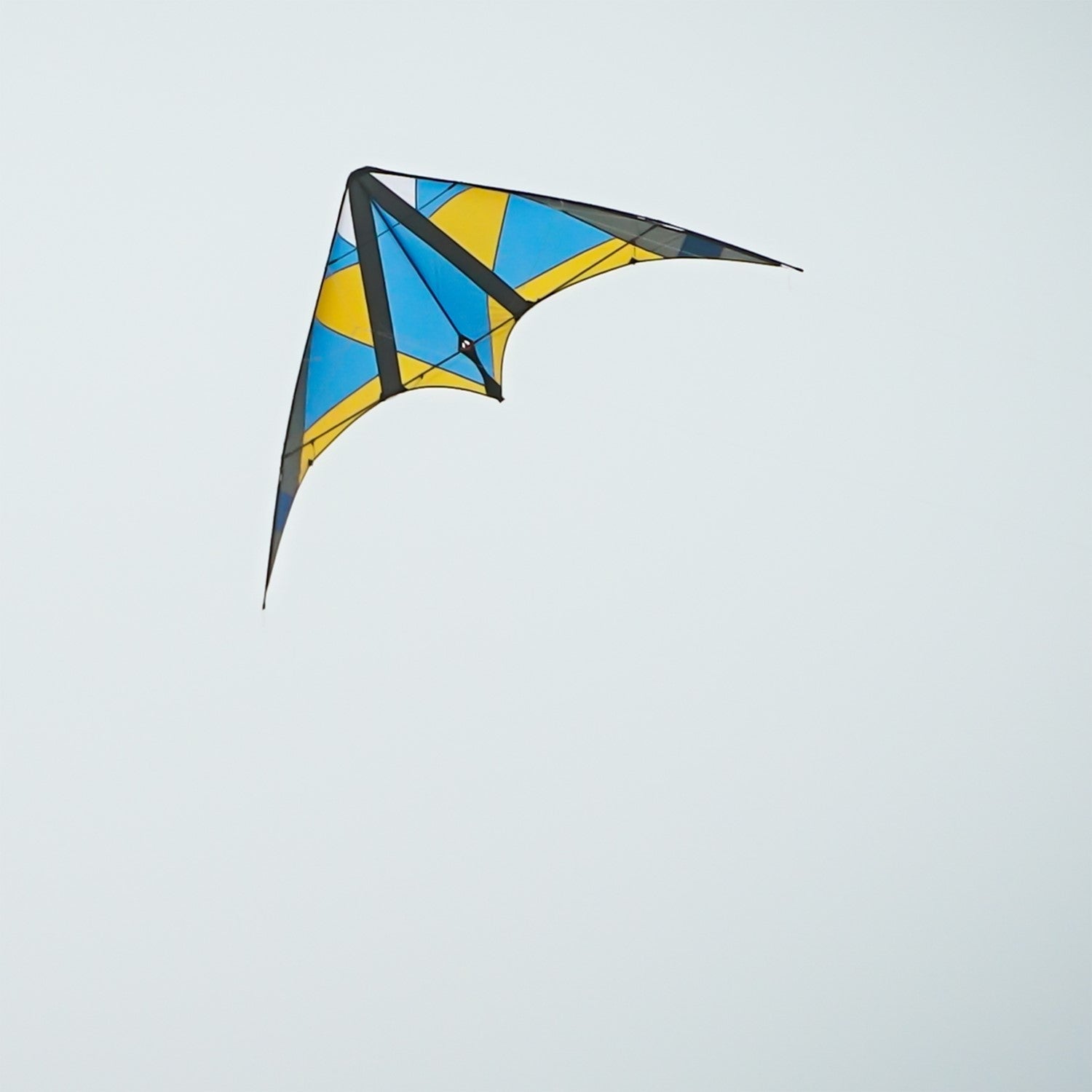 Made from weather and fade resistant ripstop nylon, the Blue Hornet 1 Stunt Kite is an exceptional value and an excellent kite for someone with already experienced with sport kites. Two 80' lengths of 150lb Dyneema lines and a storage bag are included so all you'll need is some open space and a bit of wind to get things started.