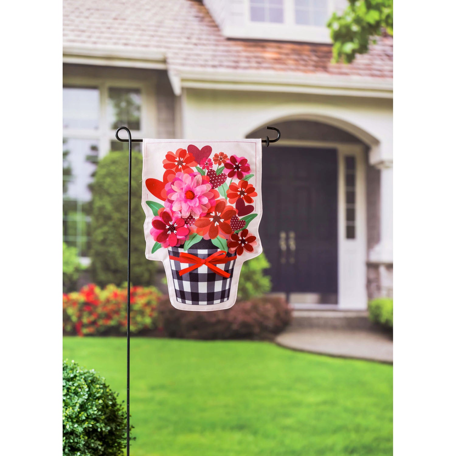 Buffalo Check Flower Pot Printed Burlap Garden Flag; Polyester 12.5"x18"