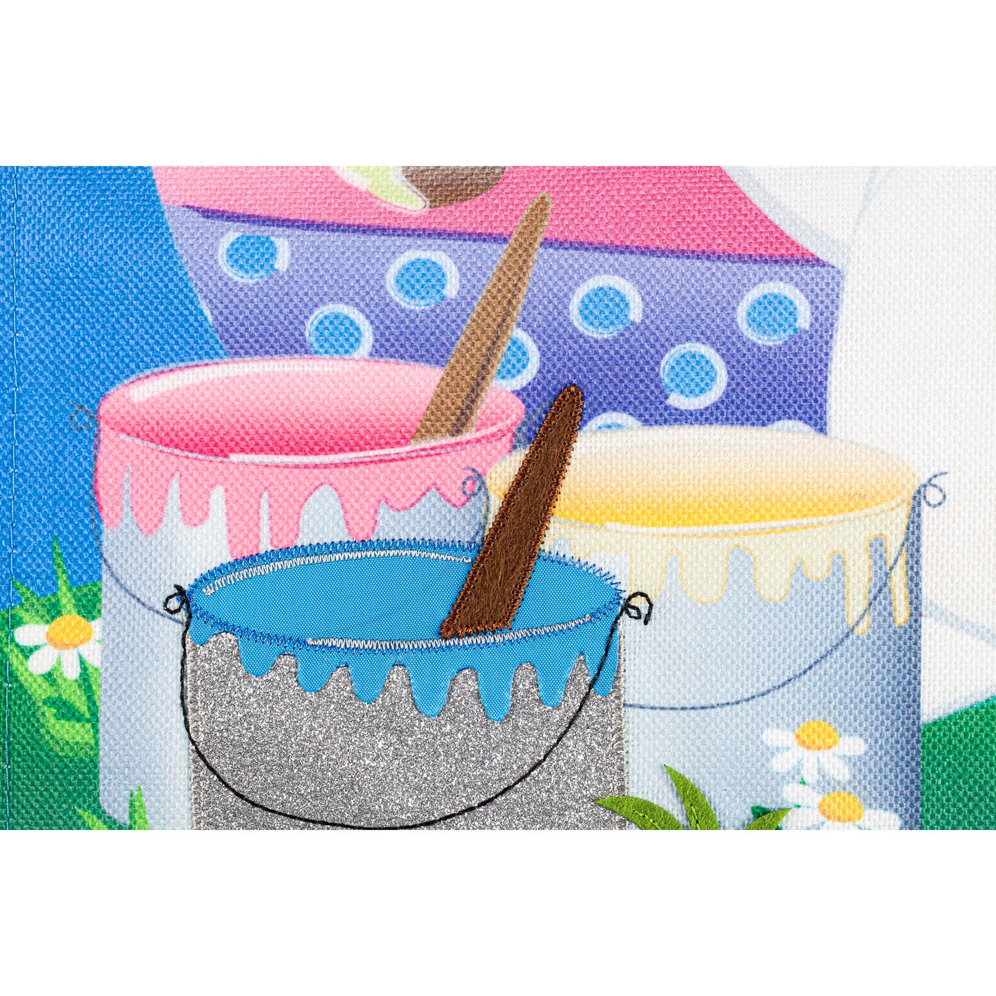 Bunny Painting Easter Egg Burlap House Flag; Polyester 28"x44"
