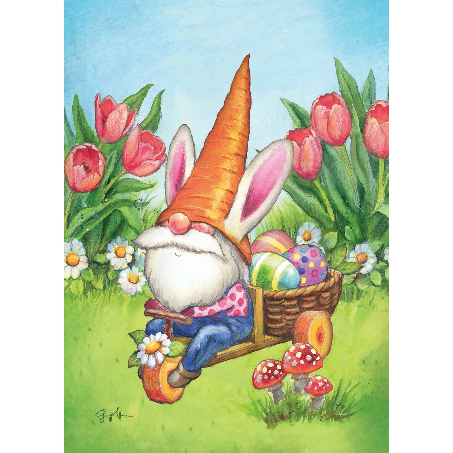 Carrot Hat Gnome Printed Suede Garden Flag; Polyester 12.5"x18"