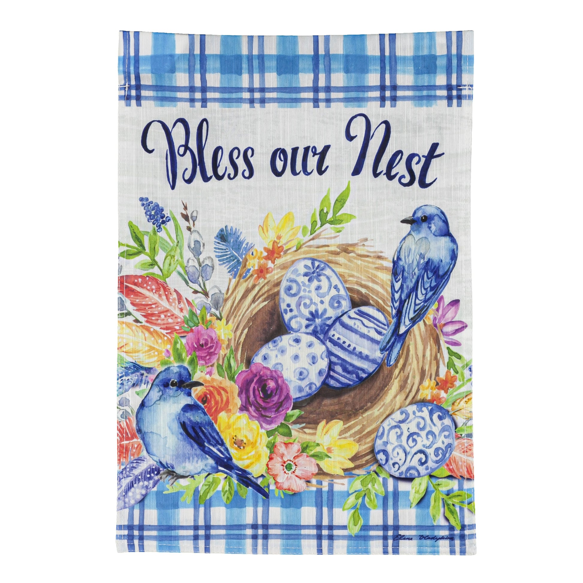 Chinoiserie Birds Nest Printed Textured Striation Garden Flag; Polyester 12.5"x18"