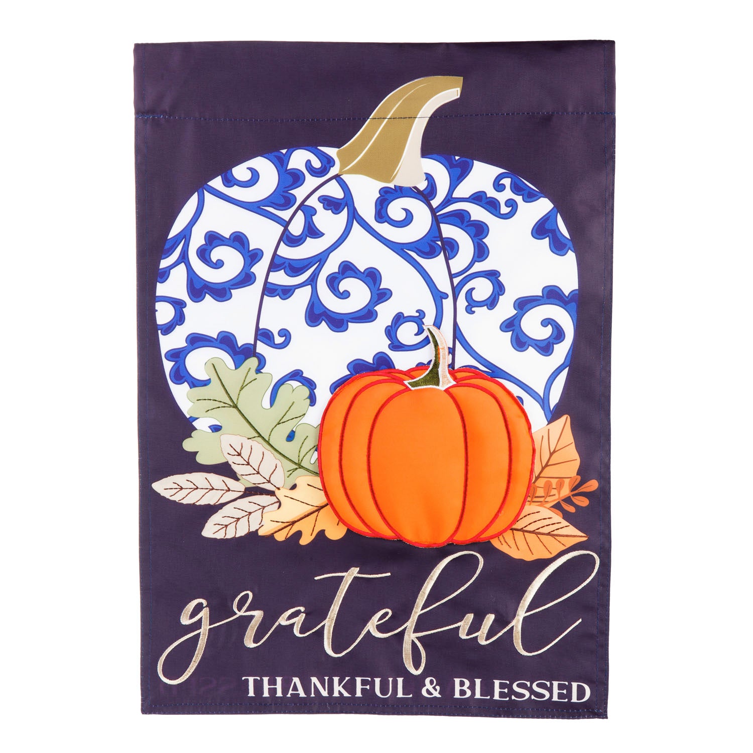 Chinoiserie Pumpkin Applique House Flag; Polyester 28"x44"