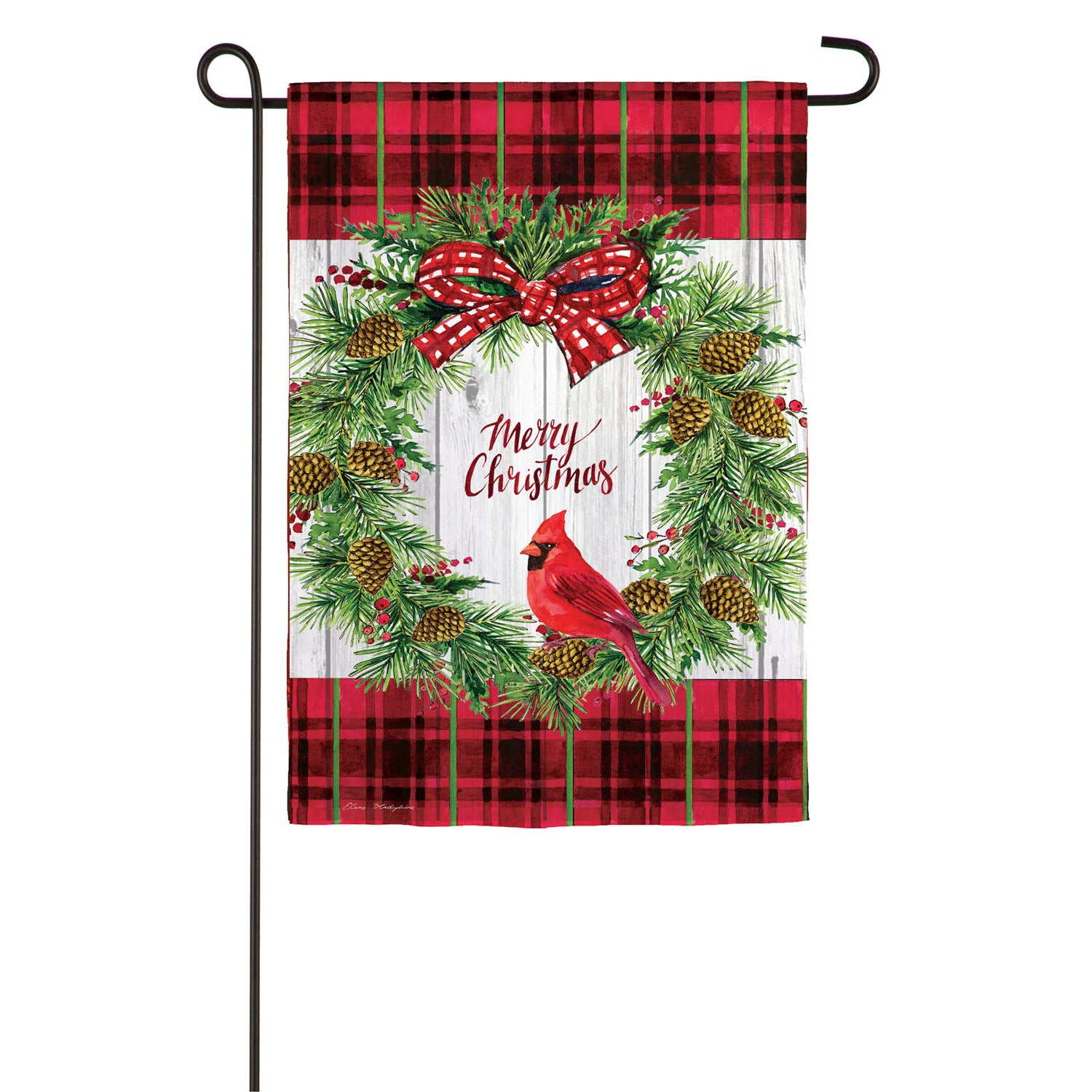 Christmas Cardinal Wreath Printed Textured Suede Garden Flag; Polyester 12.5"x18"