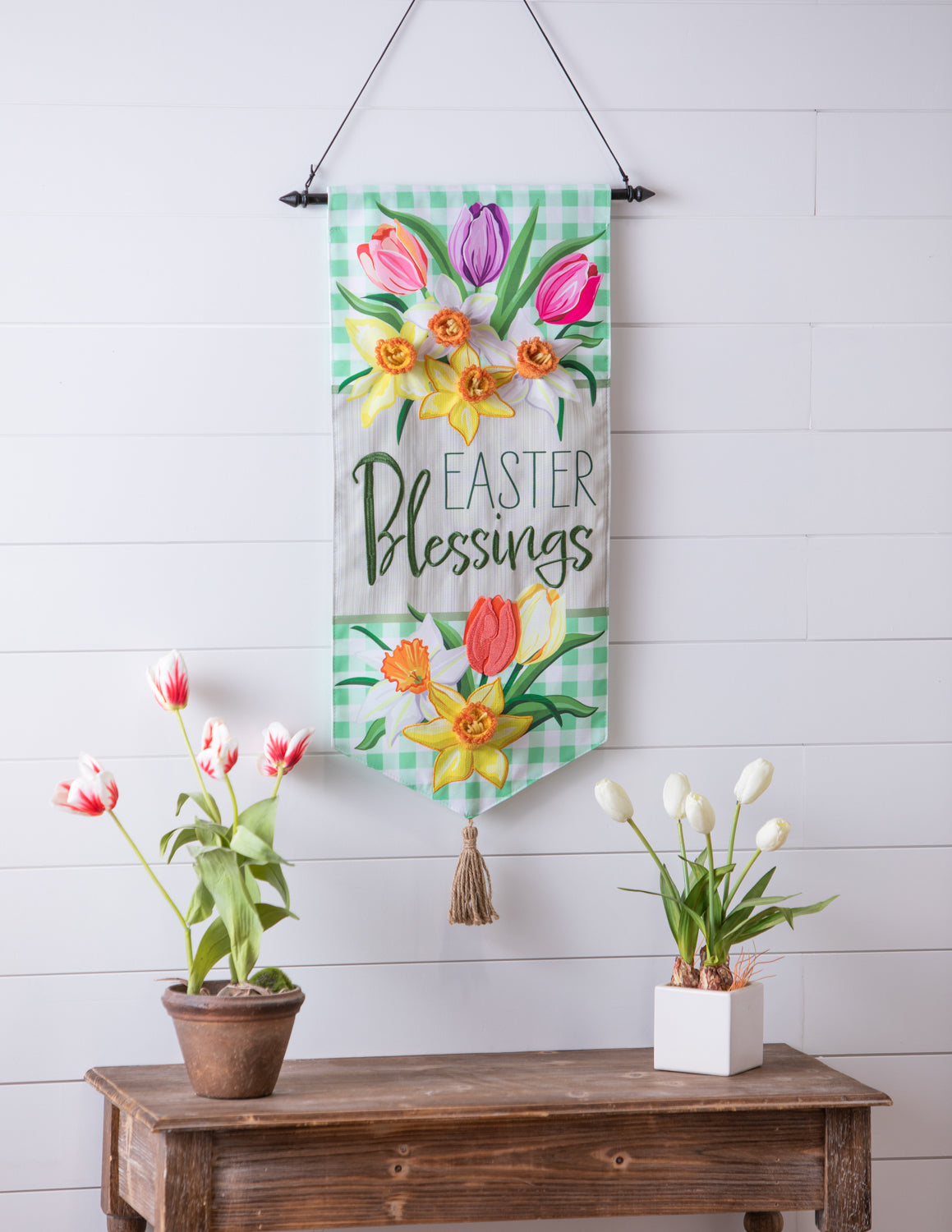 Easter Blessings Everlasting Impressions Garden Flag; Polyester-Linen Blend 12.5"x28"