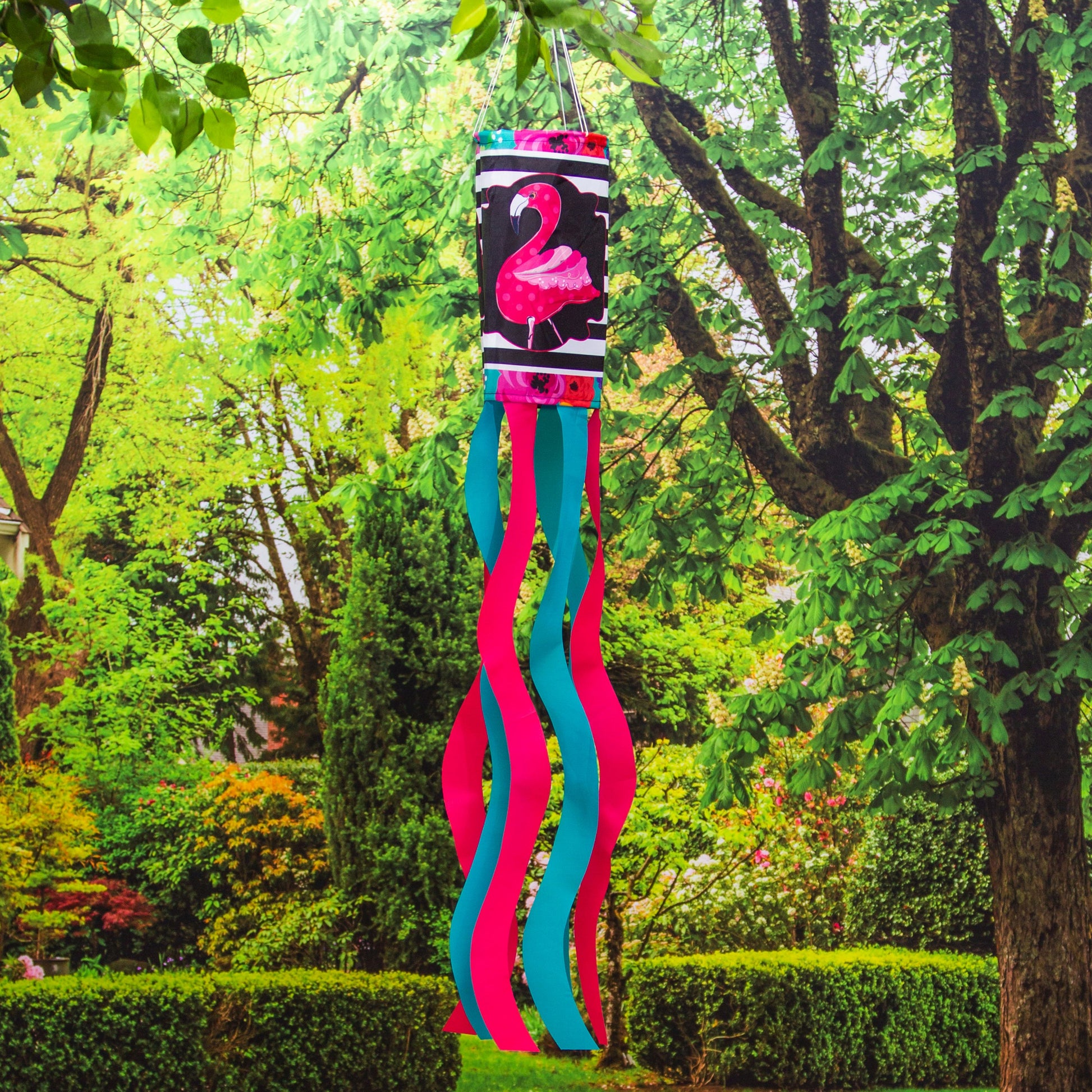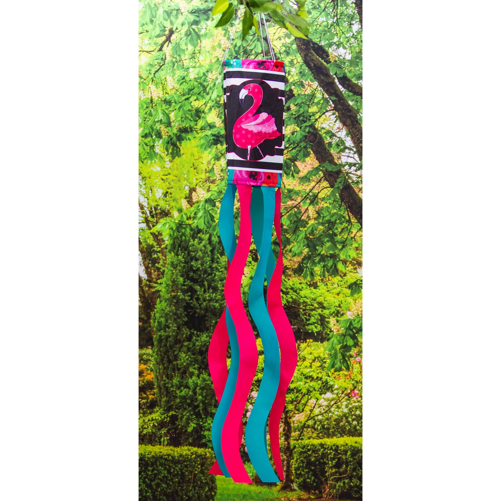 Flamingo Stripes and Flowers Windsock; Polyester 7"ODx38"L