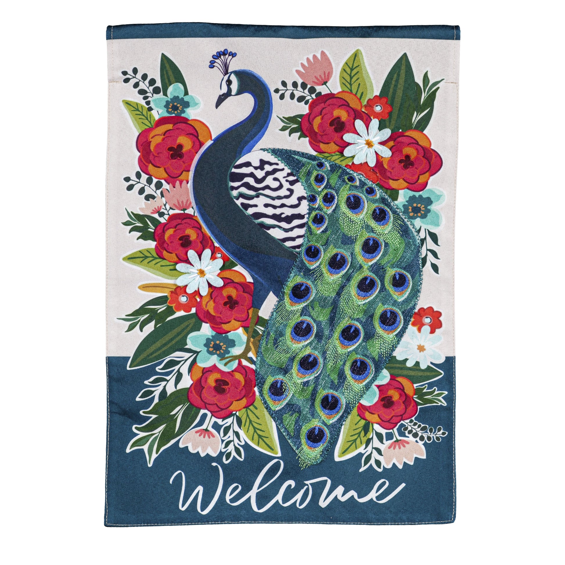 Floral Peacock Garden Flag; Linen Textured Polyester 12.5"x18"