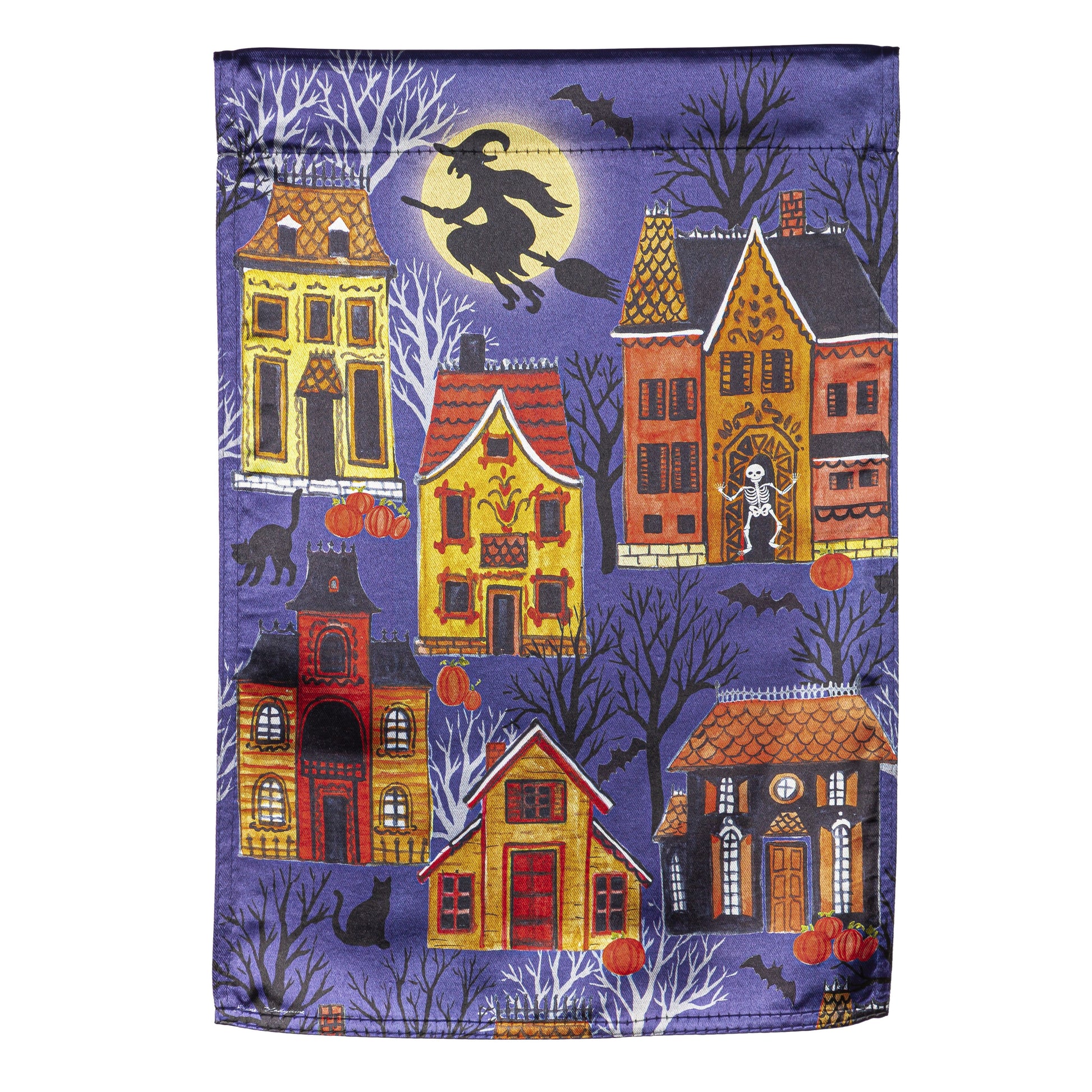 Halloween Village Printed Lustre Garden Flag; Linen Polyester 12.5"x18"