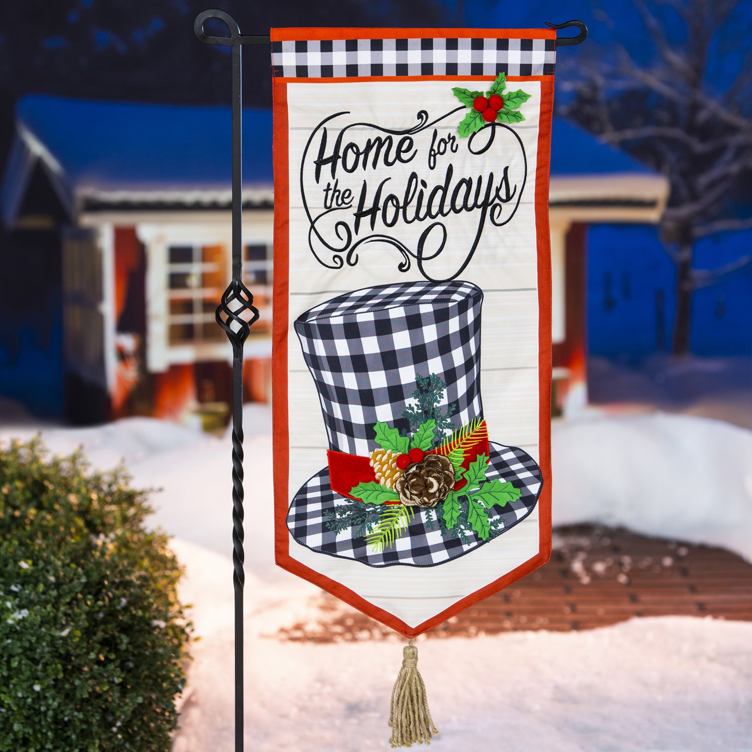 Holiday Top Hat Printed Everlasting Impressions Garden Flag; Polyester-Linen Blend 12.5"x28"
