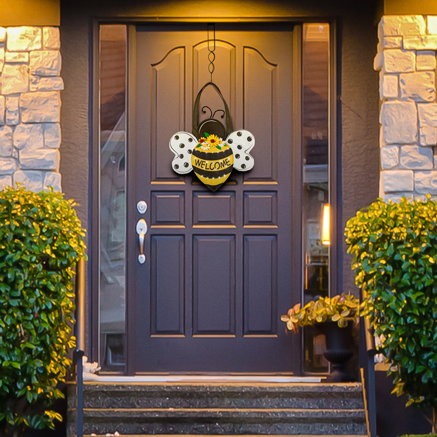 Home Sweet Home Bee Lit Door Hanger; Burlap 17"Lx17"W