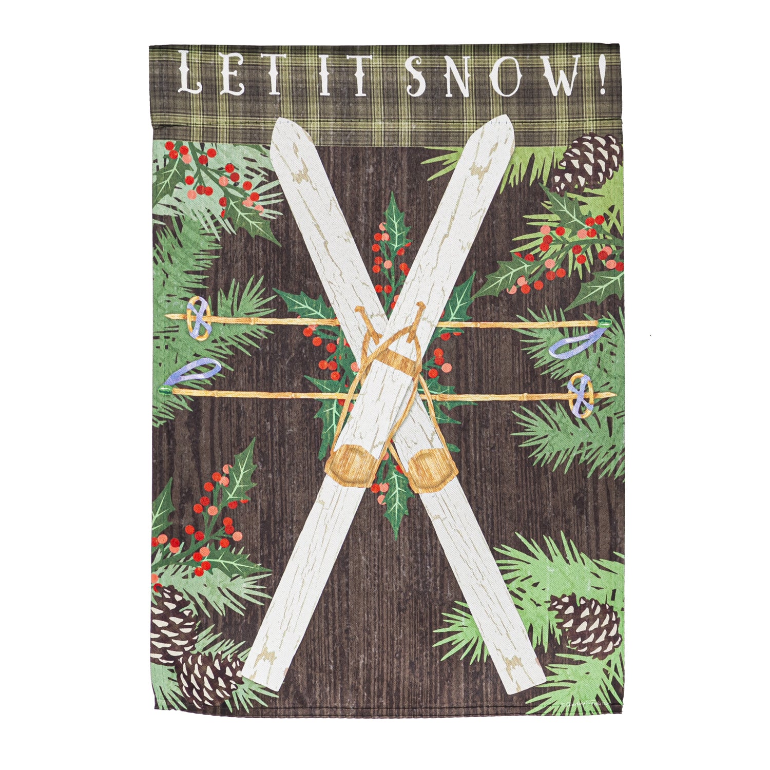 Let it Snow Skis Printed Suede Garden Flag; Polyester 12.5"x18"