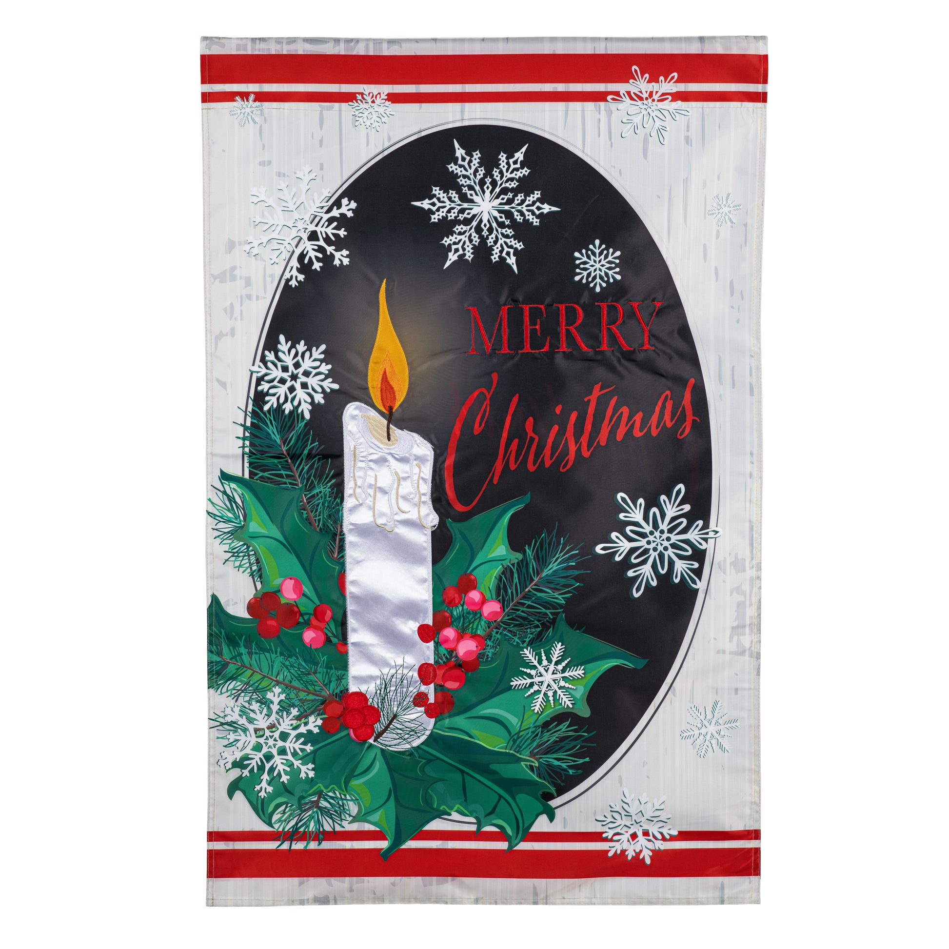 Merry Christmas Holly Applique House Flag; Polyester 28"x44"