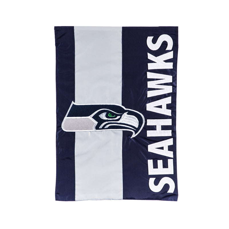 Cheer on your Seattle Seahawks with this classic applique garden flag. An excellent choice for flying any time of the year, this durable outdoor garden flag features applique construction and is readable from both sides. Finished with a sleeve across the top for easy attachment to your garden flag pole. Measures 12.5"x18".