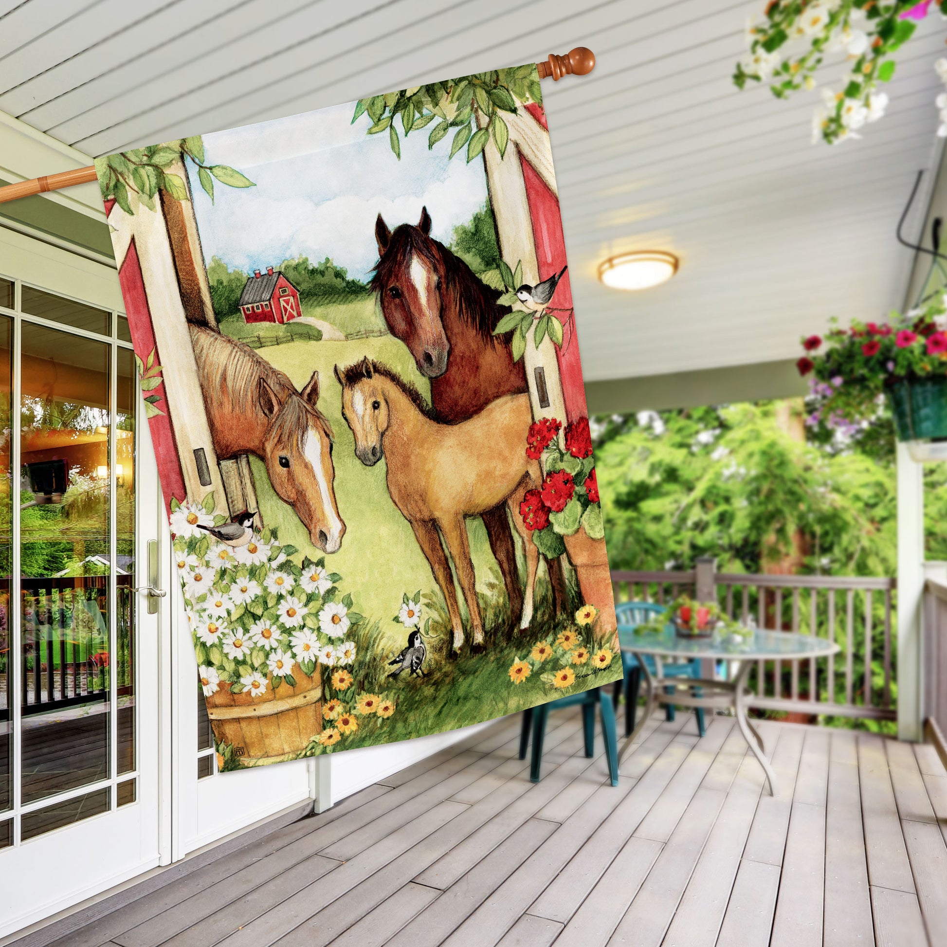 Made from polyester fabric, this printed flag reads correct from the front and reverse from the backside. Fits any of our standard house mounted flagpoles and accessories. Measures 28"x40".