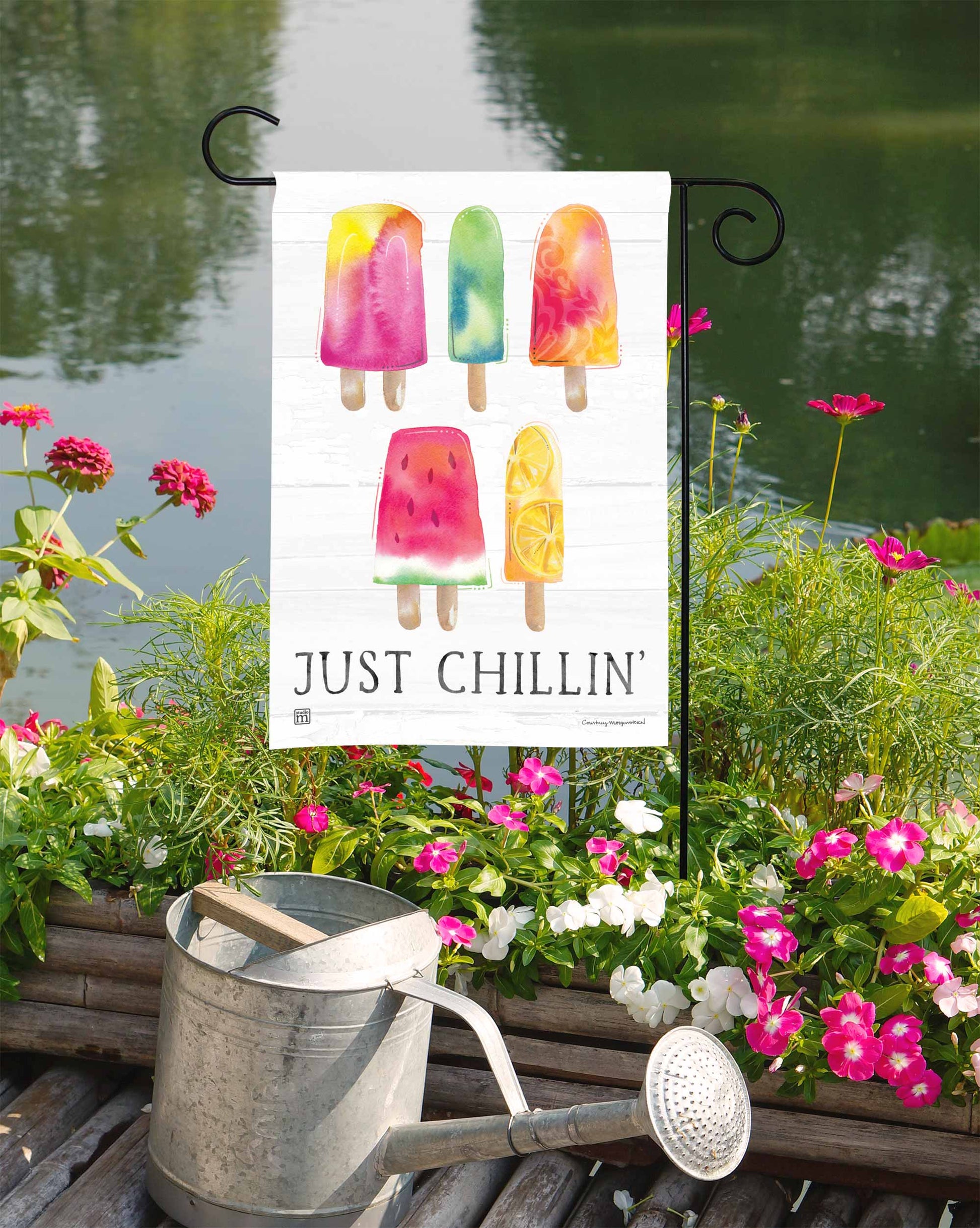 Celebrate Summer at your home with this Sweet Summer Treats garden flag - it will be the perfect addition garden. Features a white background with a lineup of colorful Summer popsicles. Made with our outdoor polyester fabric, this garden flag is printed on one side so reads correct from the front and reverse from the backside. Fits any standard size garden garden flagpole or bracket and is an excellent choice for outdoor display. Measures 12.5"x18".