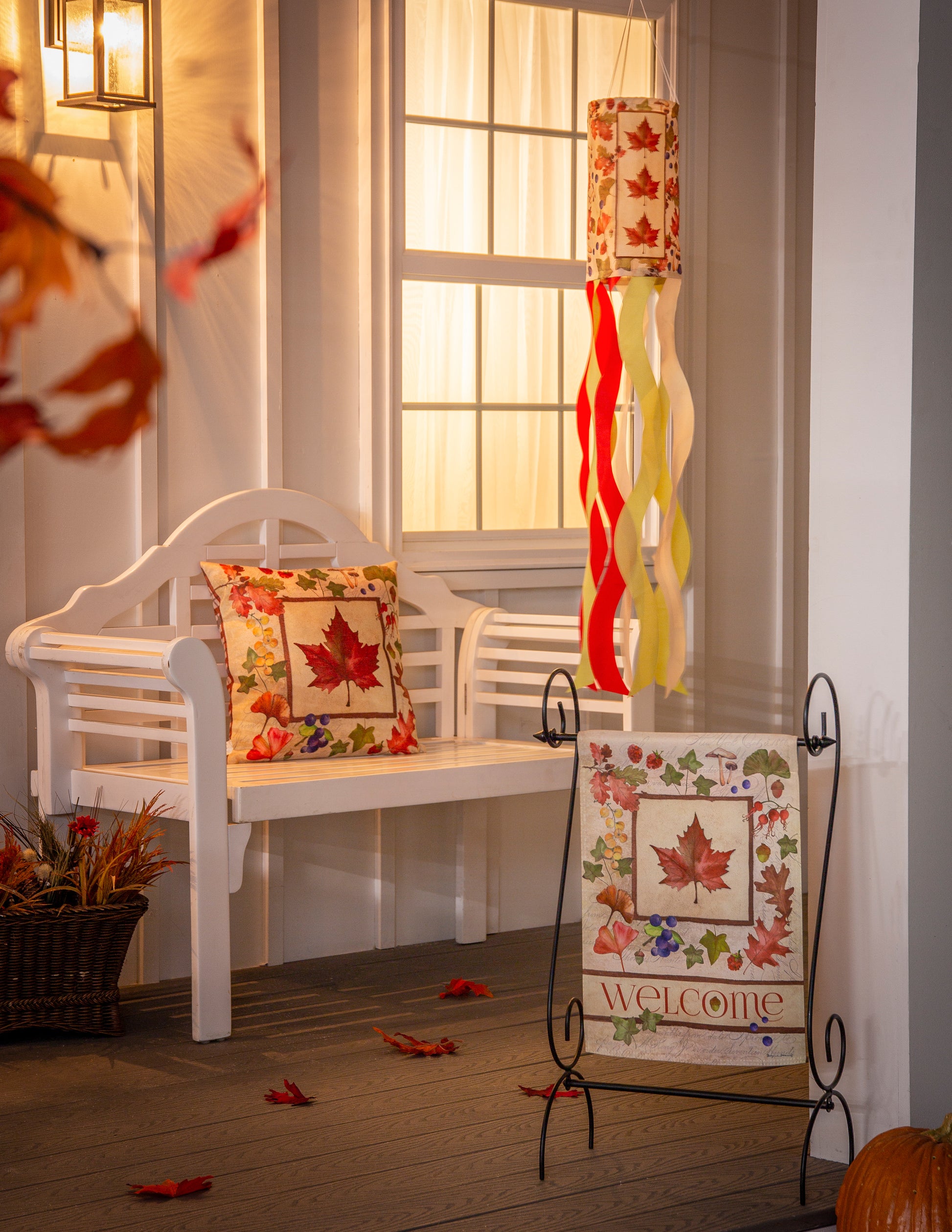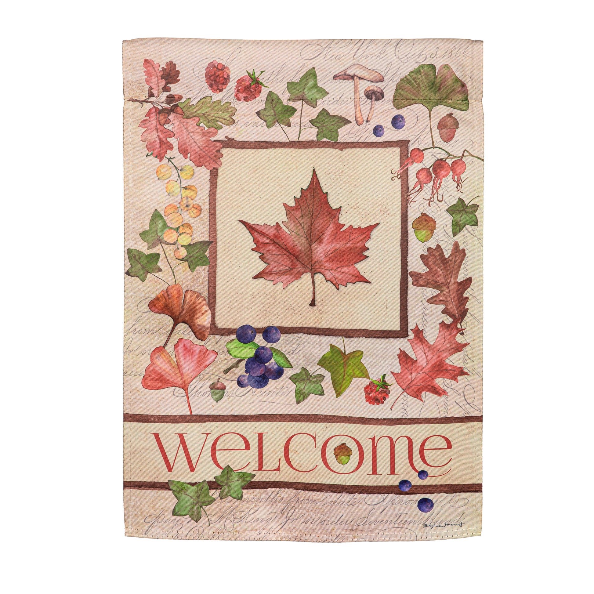 Welcome Fall Leaf Printed Suede Garden Flag; Polyester 12.5"x18"