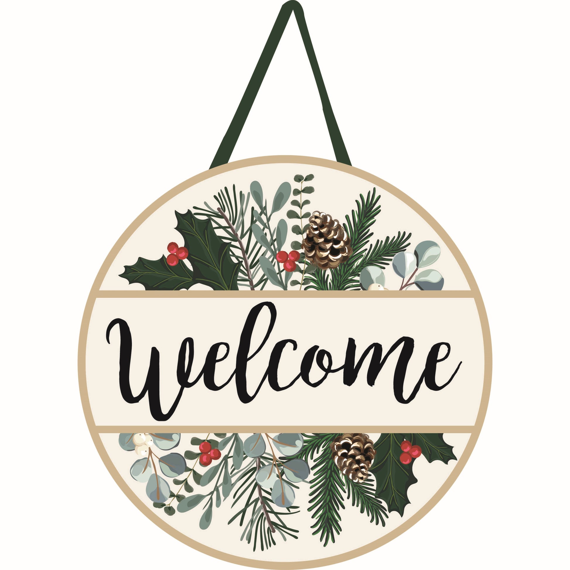 Winter Welcome Moire Door Hanger; Polyester 13"Lx13"W